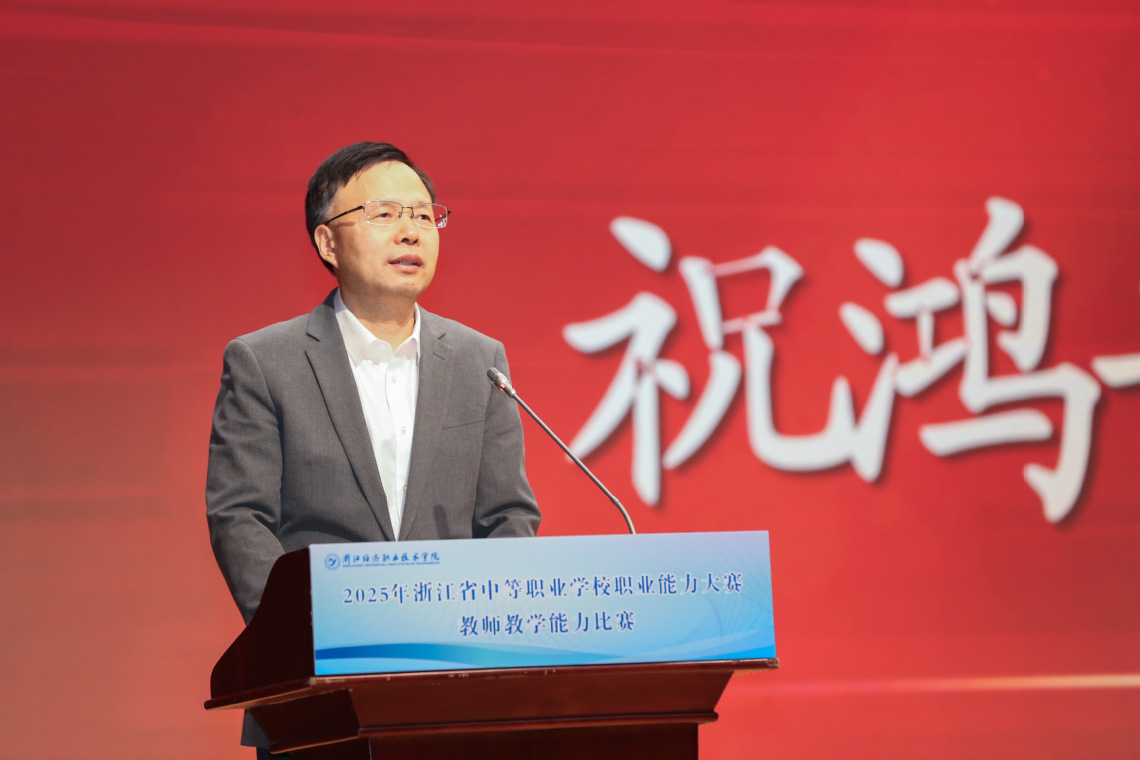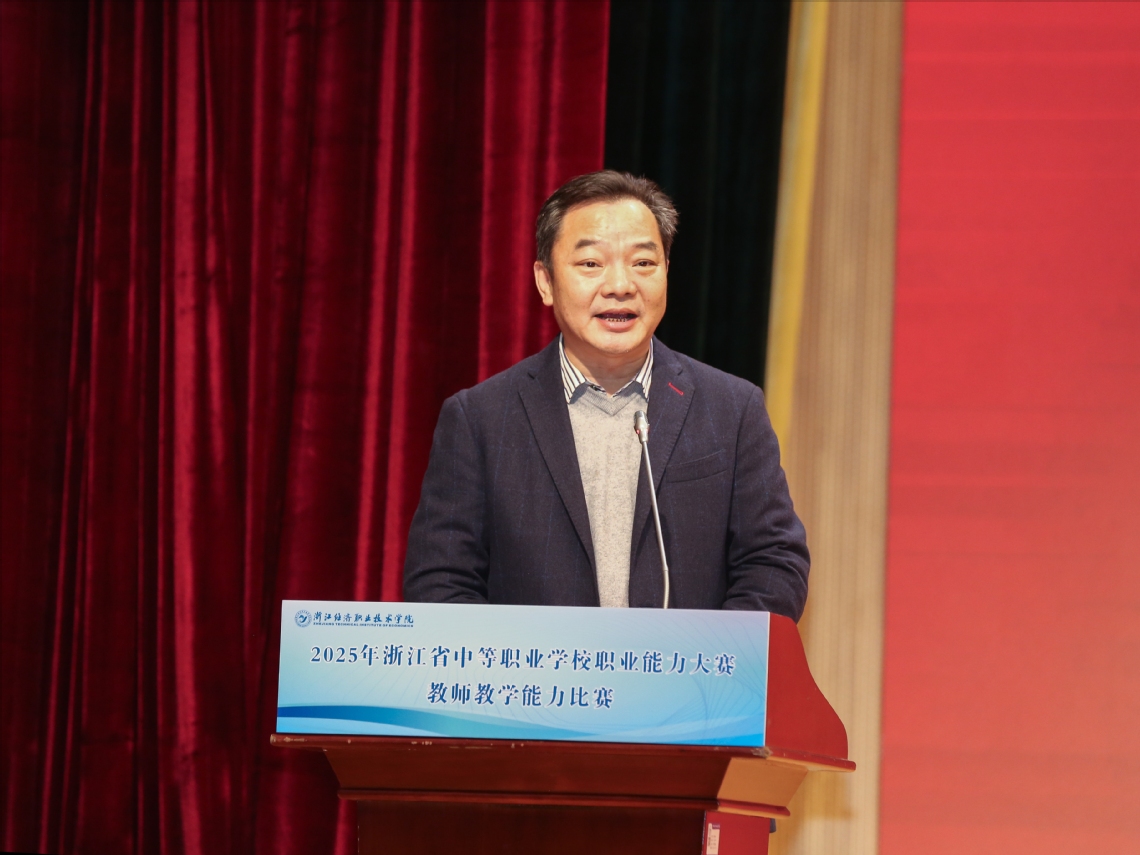 为进一步深化教师、教材、教法“三教”改革,推动教师综合能力全面提升,11月8日,由浙江省教育厅主办、浙江省教育科学研究院与浙江经济职业技术学院共同承办的2025年浙江省中等职业学校职业能力大赛教师教学能力比赛决赛顺利闭幕。浙江省教育科学研究院院长祝鸿平、浙江省教育厅职业与成人教育研究所副所长于丽娟、浙江经济职业技术学院副校长聂华等出席闭幕式并为获奖选手颁奖,闭幕式由我校教务处处长周建荣主持。